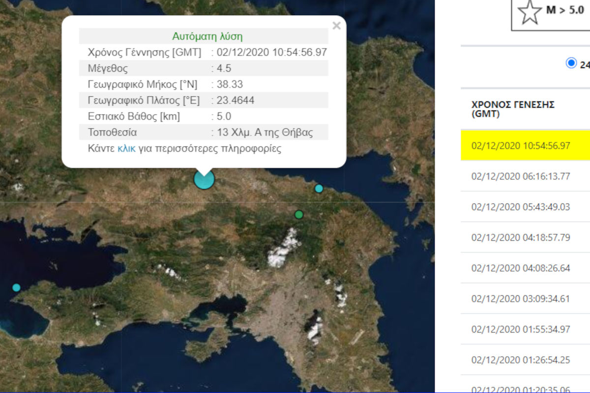 Το επίκεντρο του σεισμού σύμφωνα με τα πρώτα στοιχεία από το Γεωδυναμικό Ινστιτούτο εντοπίζεται στη Θήβα.
