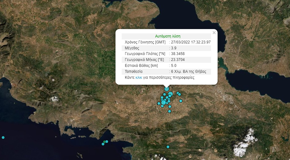 Σεισμική δόνηση μεγέθους 3,9 βαθμών της κλίμακας Ρίχτερ σημειώθηκε πριν από λίγη ώρα κοντά στη Θήβα.