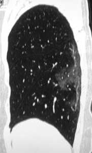 Οι σαρώσεις του, που δόθηκαν στη δημοσιότητα από την Ακτινολογική Εταιρεία της Βόρειας Αμερικής, δείχνουν λευκά στίγματα στις κάτω γωνίες των πνευμόνων του, πράγμα που υποδηλώνει τη μερική πλήρωση των αεραγωγών.