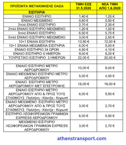 O ΟΑΣΑ ενημερώνει το επιβατικό κοινό ότι, από τη Δευτέρα 1η Ιουνίου 2020, αναπροσαρμόζονται οι τιμές των εισιτηρίων και καρτών του Οργανισμού.