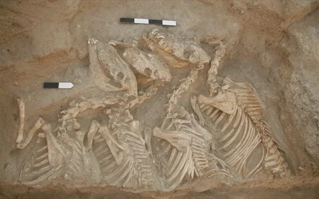 Σε δημοσίευση τους στην επιθεώρηση «Science Advances», οι ερευνητές αναφέρουν ότι κάποιοι από τους σκελετούς ζώων που βρέθηκαν εκεί ανήκουν σε ένα άγνωστο μέχρι σήμερα είδος γαϊδάρων που αποτελούσε υβρίδιο εξημερωμένων και άγριων γαϊδάρων.