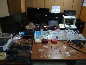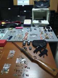 Κατασχέθηκαν πλήθος κοσμημάτων, ρολογιών, ηλεκτρικών συσκευών, διαρρηκτικά εργαλεία, χρηματοκιβώτιο και δύο (2) οχήματα