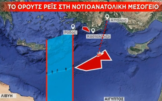 H περιοχή που έχει δεσμεύσει η Τουρκία σταματά λίγο πριν τα όρια της ελληνοαιγυπτιακής συμφωνίας