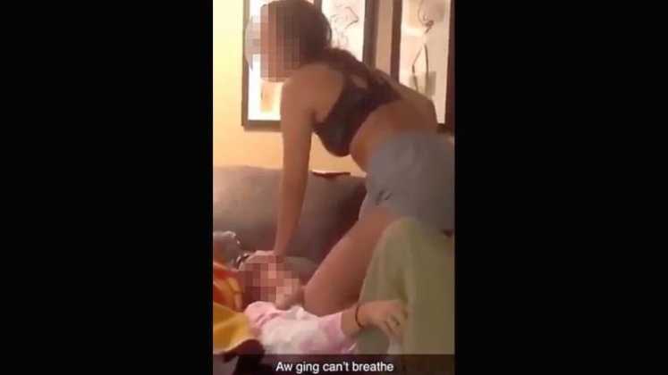 Οι έφηβοι πόζαραν πιέζοντας τα γόνατά τους στο λαιμό φίλων, πεσμένων στο πάτωμα, αναπαριστώντας τη βίαιη σκηνή.