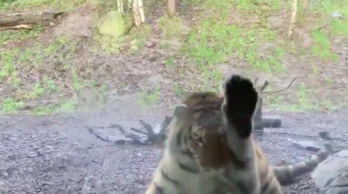 Περίμενε τον πατέρα του να τον τραβήξει μία φωτογραφία, αλλά η τίγρης είχε άλλες διαθέσεις. Πλησίασε προς το μέρος του… και θα τον έκανε μεζεδάκι, αν δεν υπήρχε προστατευτικό τζάμι.