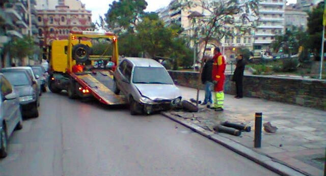 Μικρή αναστάτωση προκλήθηκε το πρωί στο κέντρο Θεσσαλονίκης όταν επί της οδού Μακένζυ Κινγκ ένα αυτοκίνητο εκτός ελέγχου ανέβηκε στο πεζοδρόμιο και καρφώθηκε στα προστατευτικά κολωνάκια