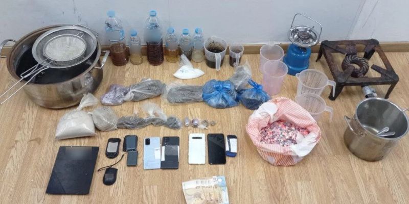 Μετά από αστυνομικές έρευνες σε δύο διαμερίσματα στην Κυψέλη, βρέθηκαν στο πρώτο ποσότητα ηρωίνης και στο δεύτερο εγκατεστημένο ένα πλήρως εξοπλισμένο εργαστήριο μετατροπής μεθαμφεταμίνης από υγρή σε στερεή μορφή (κρυσταλλική) και ποσότητες μεθαμφεταμίνης και ηρωίνης.