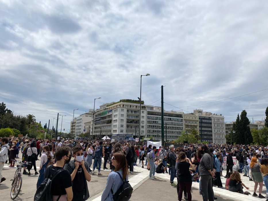 Συγκέντρωση έξω από τη Βουλή πραγματοποιούν οι καλλιτέχνες, ζητώντας στήριξη του κλάδου τους από την Πολιτεία λόγω του πλήγματος που έχουν δεχθεί από την ακύρωση όλων των καλλιτεχνικών εκδηλώσεων.
