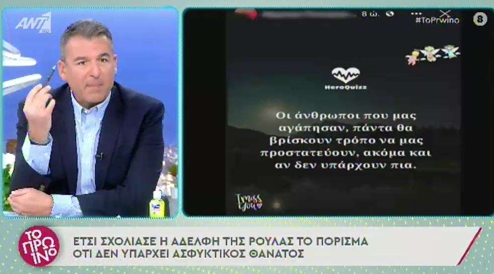 Η ανάρτηση της αδελφής της Ρούλας Πισπιρίγκου / Φωτογραφία: ant1 video snapshot