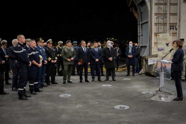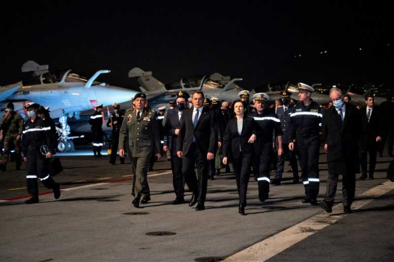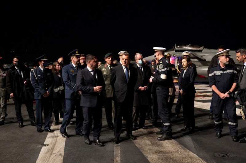 Ο Υπουργός Εθνικής Αμύνης κ. Νικόλαος Παναγιωτόπουλος και η Υπουργός Άμυνας της Γαλλίας κ. Φλωράνς Παρλύ (Florence Parly) επισκέφθηκαν χθες Πέμπτη 24 Μαρτίου 2022, το αεροπλανοφόρο του Γαλλικού Ναυτικού «Σαρλ ντε Γκωλ» το οποίο ναυλοχεί στο αγκυροβόλιο ανοικτά του Φαληρικού Όρμου.