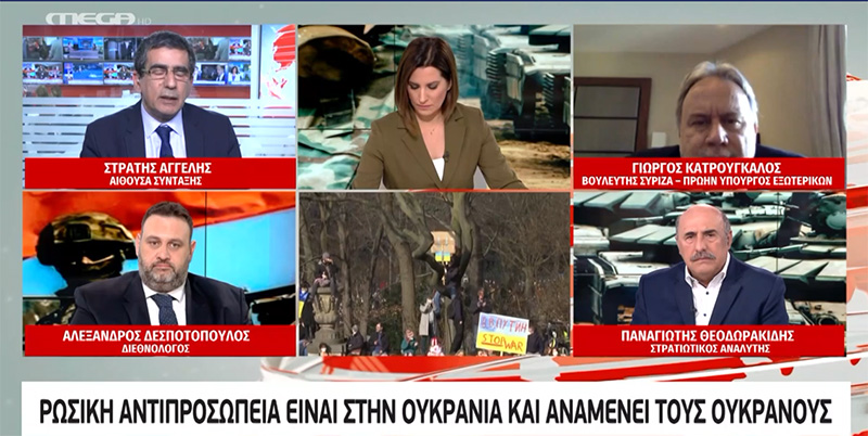 Ο βουλευτής του ΣΥΡΙΖΑ και πρώην υπουργός Εξωτερικών Γιώργος Κατρούγκαλος, στάθηκε απέναντι στην επιλογή της Ελλάδας έναντι της εισβολής της Ρωσίας στην Ουκρανία και δήλωσε ότι αν ήταν στην κυβέρνηση ο ΣΥΡΙΖΑ «δεν θα έστελνε στην Ουκρανία στρατιωτικό υλικό, αλλά πολύ περισσότερο ανθρωπιστικό υλικό», μιλώντας στο Mega.