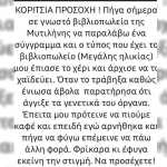 Σύμφωνα με δημοσίευμα του stonisi.gr, φοιτήτριες του Πανεπιστημίου Αιγαίου στη Μυτιλήνη καταγγέλουν για σεξουαλική παρενόχληση ηλικιωμένο άνδρα ιδιοκτήτη του βιβλιοπωλείου, από όπου προμηθεύοντα τα...