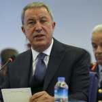 Ο Τούρκος υπουργός Άμυνας, Χουλουσί Ακάρ, μιλώντας σε δημοσιογράφους...