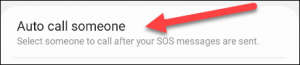 Στη συνέχεια, μπορείτε να ζητήσετε από το τηλέφωνό σας να καλεί αυτόματα έναν από τους παραλήπτες μαζί με το μήνυμα SOS. Πατήστε “Αυτόματη κλήση σε κάποιον” και, στη συνέχεια επιλέξτε μία από τις επιλεγμένες επαφές.