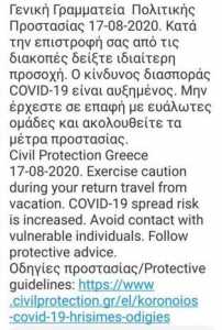 Ο κώδωνας του κινδύνου για τον περιορισμό της διασποράς του κορονοϊού μετά τη ραγδαία αύξηση των κρουσμάτων στη χώρα μας τις τελευταίες μέρες, χτύπησε για άλλη μια φορά στις 13:30 το μεσημέρι της Δευτέρας και οι περισσότεροι από εμάς έλαβαν το παρακάτω μήνυμα: