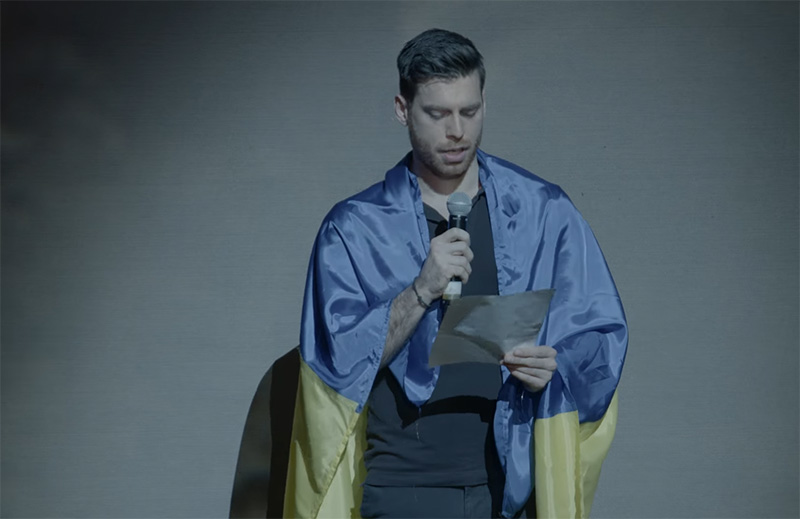 Τα γεγονότα όμως στην Ουκρανία δεν ήταν δυνατόν να αφήσουν ανεπηρέαστους τόσο τους συμμετέχοντες στην παράσταση όσο και του κοινού, ειδικά όταν ένας από τους χορευτές της Λυρικής ο οποίος έχει Έλληνα πατέρα και Ουκρανή μητέρα, ανέβηκε στη σκηνή και διάβασε ένα μήνυμα συμπαράστασης των εργαζομένων στη Λυρική προς τον ουκρανικό λαό ενώ ζήτησε, όπως και έγινε, να τηρηθεί ενός λεπτού σιγή στη μνήμη των αθώων θυμάτων του πολέμου.